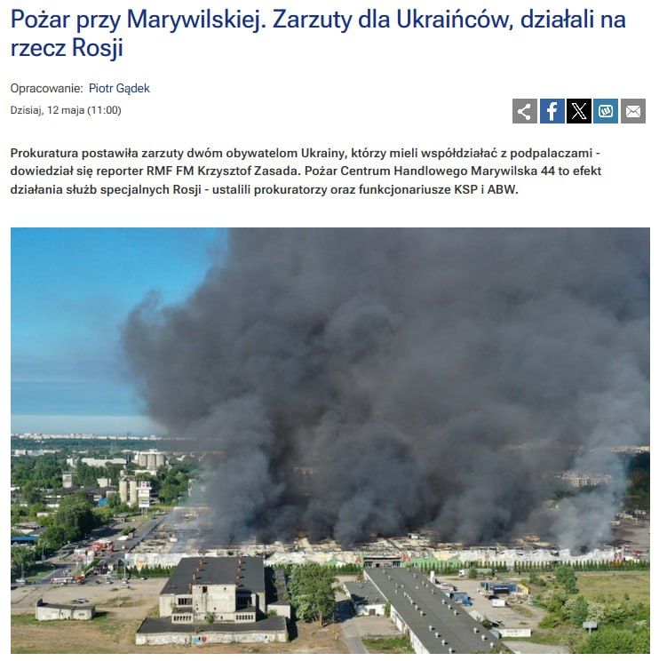 Двое украинцев устроили пожар в варшавском ТЦ, Польша обвинила Россию — RMF24
