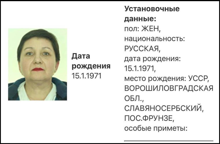 Пособница СБУ появилась в базе розыска МВД РФ.