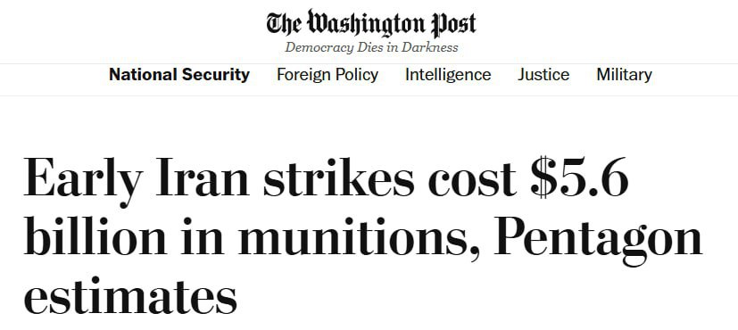 США за первые два дня войны с Ираном потратили боеприпасов на $5,6 млрд, — WP