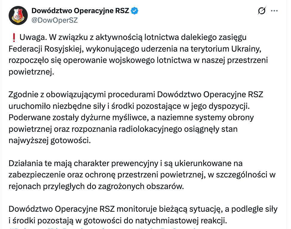 Оперативное командование ВС Польши заявило, что меры носят “превентивный характер”.