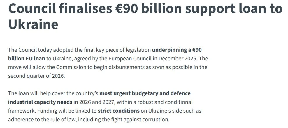 ЕС одобрил 20-й пакет санкций против России и согласовал кредит в 90 миллиардов евро для Украины