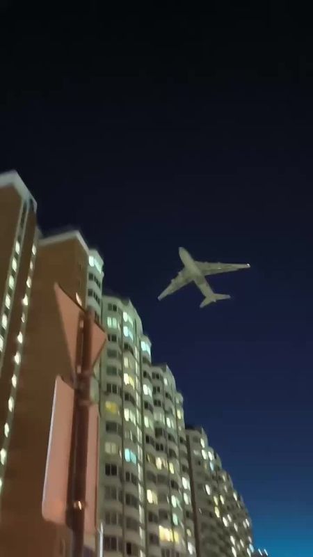 На видео 1 и 2 тяжёлый транспортный самолёт Ан-124 пролетает над жилыми домами на экстремально низкой высоте, предположительно из-за нахождения в российском воздушном пространстве вражеских БпЛА.