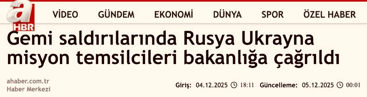 МИД Турции вызвал представители Украины и России в связи с недавними нападениями на суда в Черном море, заявив о недопустимости таких действий, сообщает A Haber