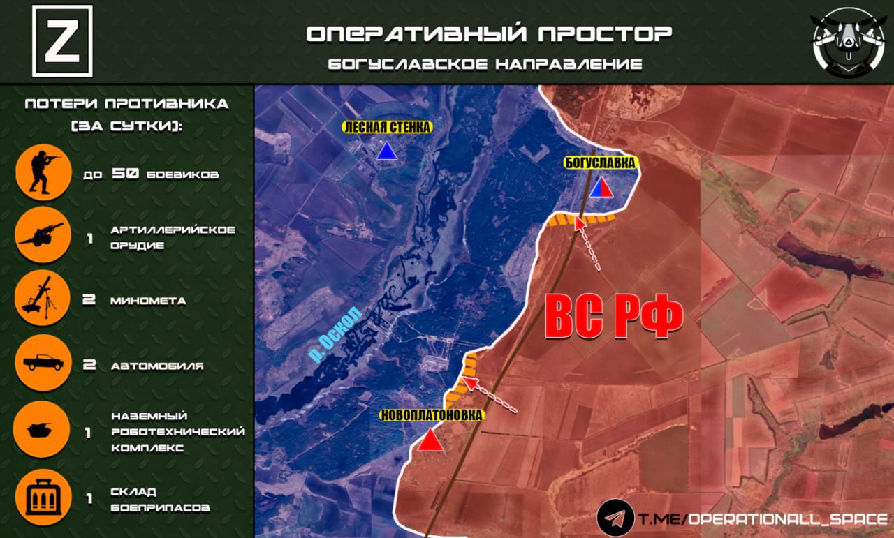 На Богуславском направлении ВС РФ продолжают наступление на рубеже Богуславка – Новоплатоновка, сообщает "Оперативный простор":