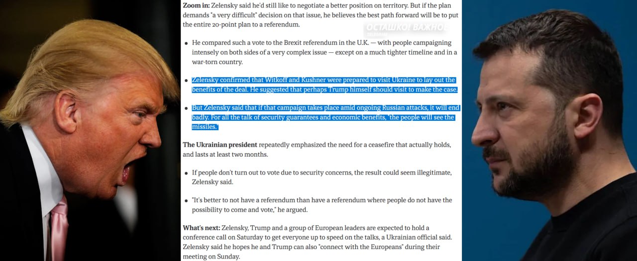 Но Зеленский сказал, что если эта кампания будет проходить на фоне продолжающихся российских атак, она закончится плохо. Несмотря на все разговоры о гарантиях безопасности и экономических выгодах, «люди увидят ракеты».