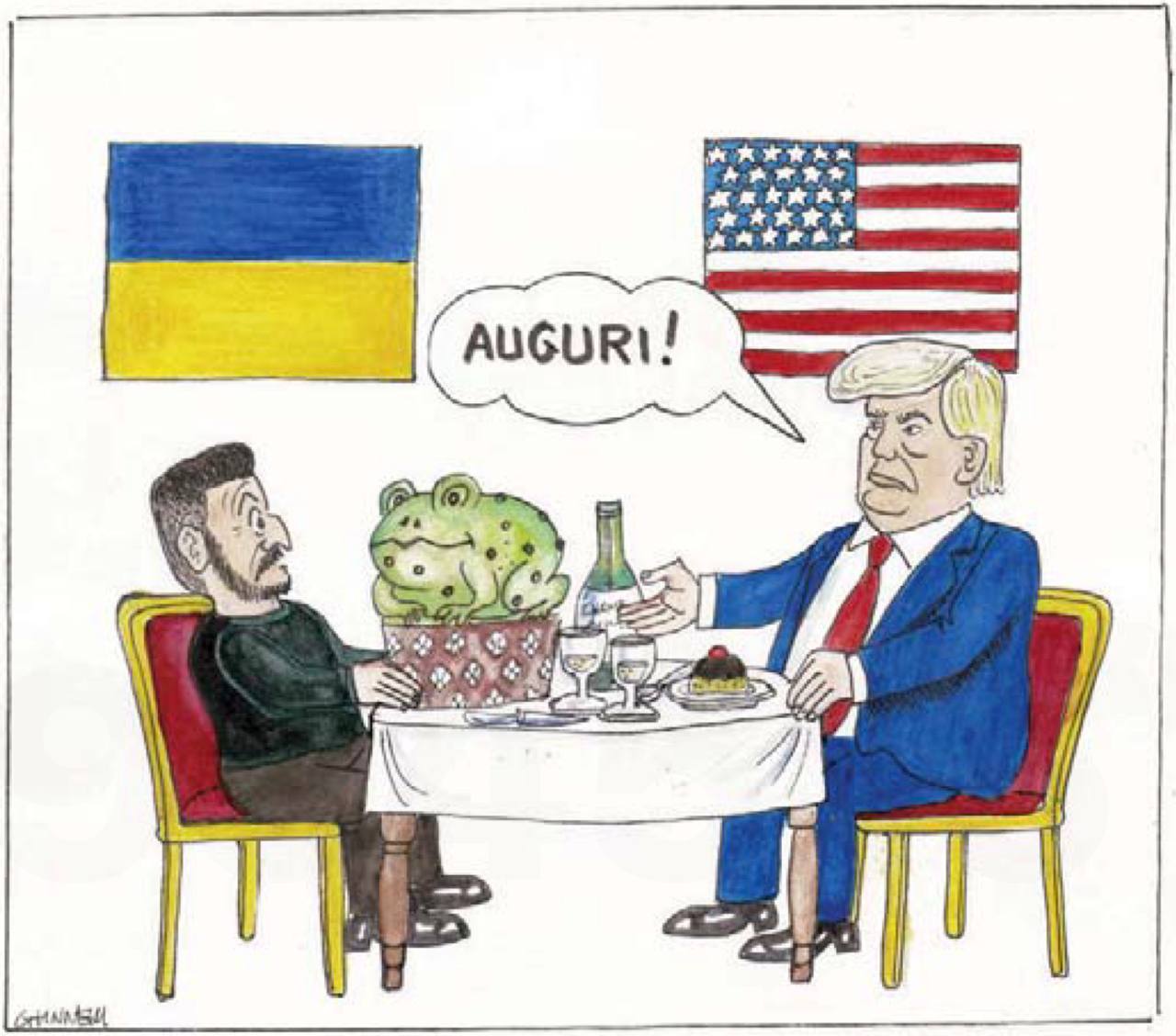 Вчера все так живо обсуждали меню с блюдами, которыми Трамп потчевал Зеленского и его компанию. А вот итальянская Corriere Della Sera полагает, что Зеленскому в Мар-о-Лаго подложили жабу! Что ж, им виднее…