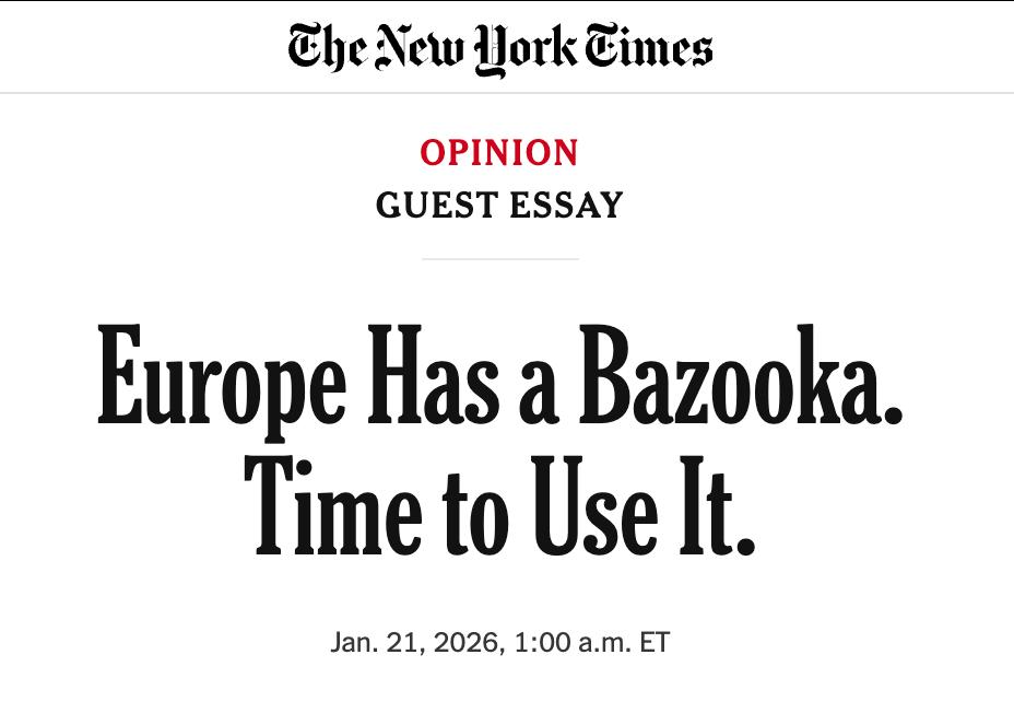 Европа рискует столкнуться с резкой реакцией США, если решится применить против Вашингтона так называемый «инструмент противодействия принуждению» из-за конфликта вокруг Гренландии. Трамп в таком случае может немедленно прекратить любую поддержку Украины.