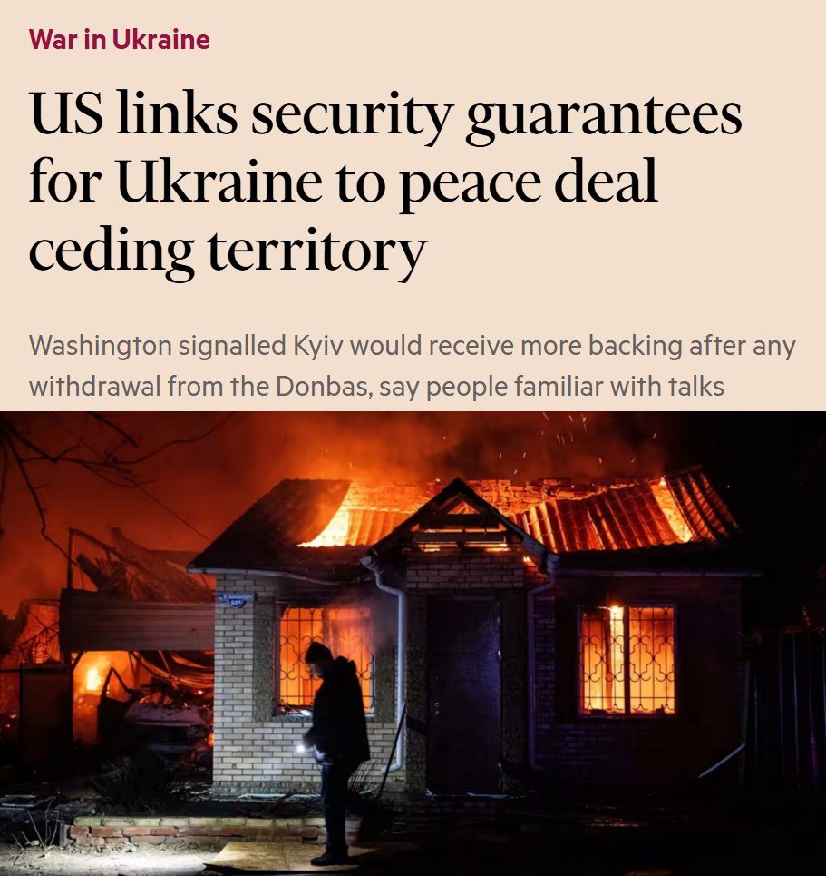 Два майора: Администрация США дала понять Киеву, что гарантии безопасности Украине будут предоставлены в случае его согласия на вывод войск из Донбасса, — Financial Times