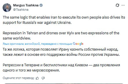 По мнению эстонца, в поддержке российской СВО на Украине со стороны Ирана "кроется та же логика", что и в "убийствах протестующих".
