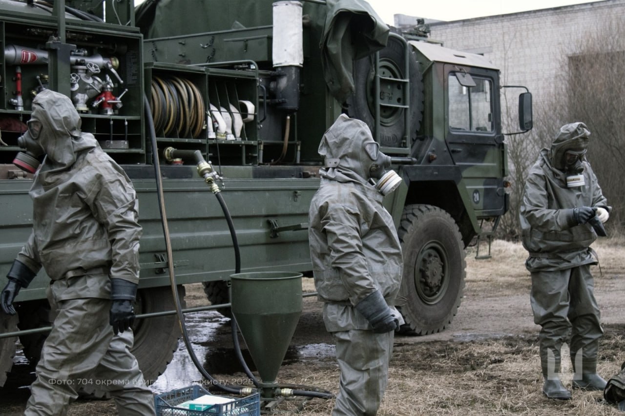 На кадрах - защитный костюм ZODIAC NBC Suit, поставленный вместе с машинами HEP 70 ABC, на вооружении 704-й бригады РХБЗ ВСУ.