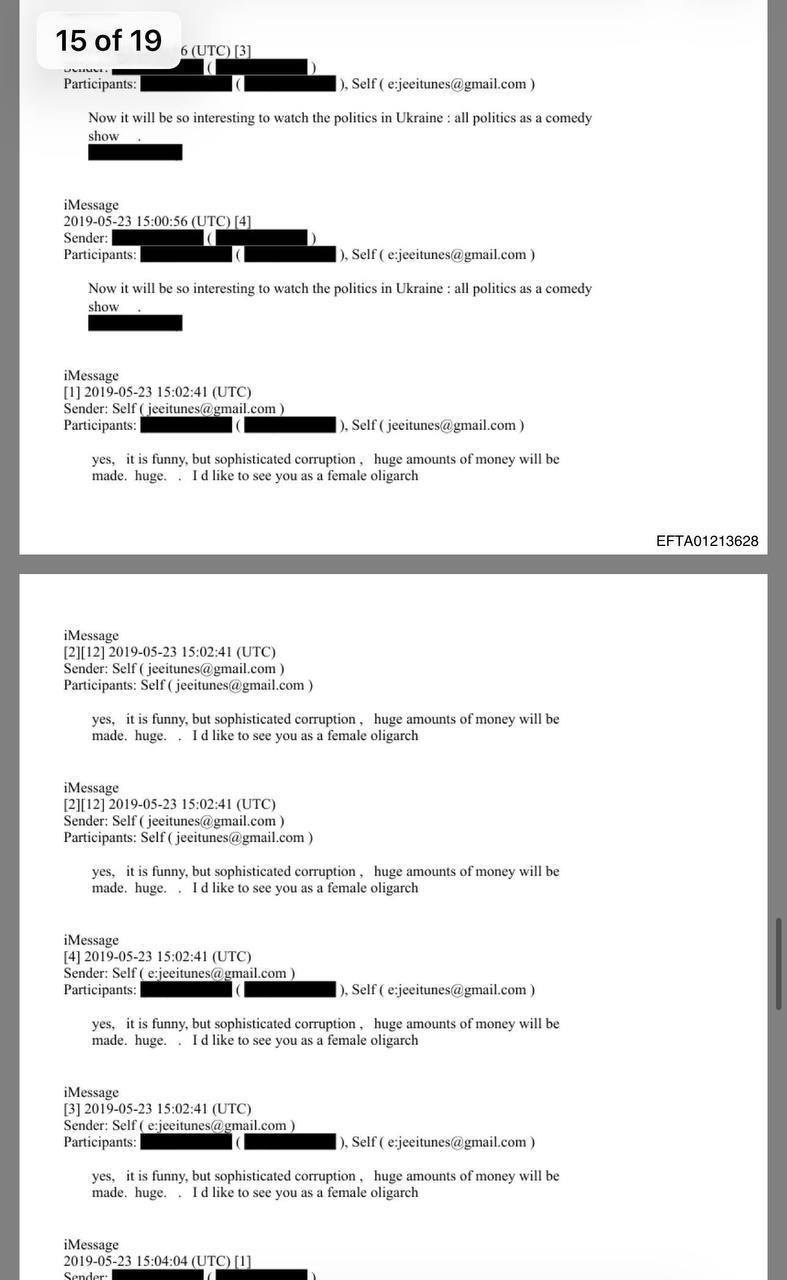 Параллельно Эпштейн активно интересовался украинской политикой после победы Зеленского и давал свои оценки происходящему. «Я хочу, чтобы ты начала читать о политике в Украине: зеленский, коррупция, парламент. Начни за этим следить», - писал он в переписке.