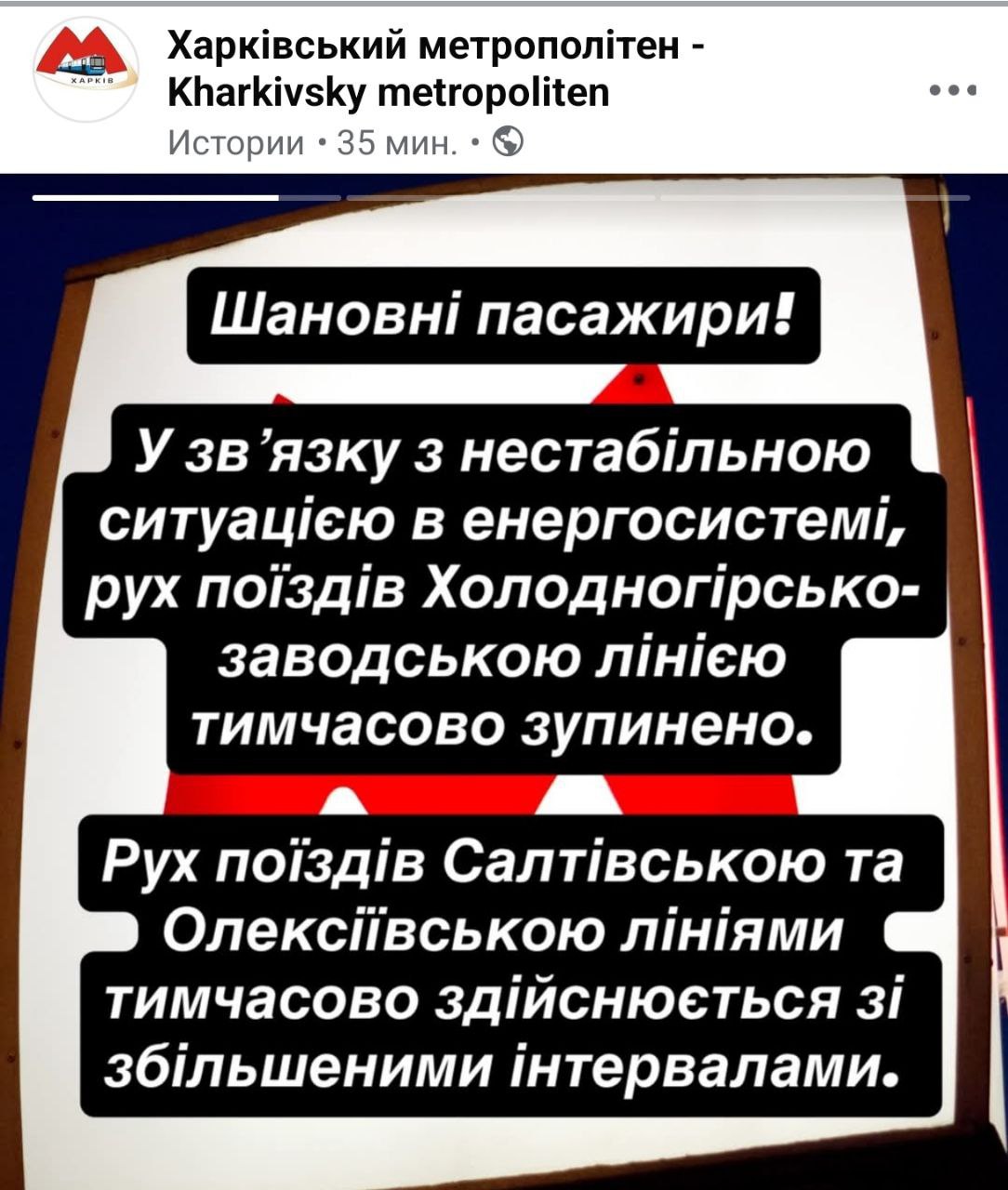 В Харькове после обстрелов остановилась одна из линий метро