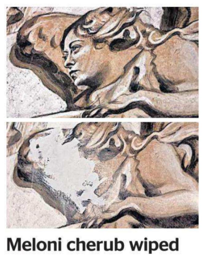 Да что ж такое! Не успели итальянцы насладиться ликом святой Мелони на стене в римской церкви, как ее изображение замазали краской!