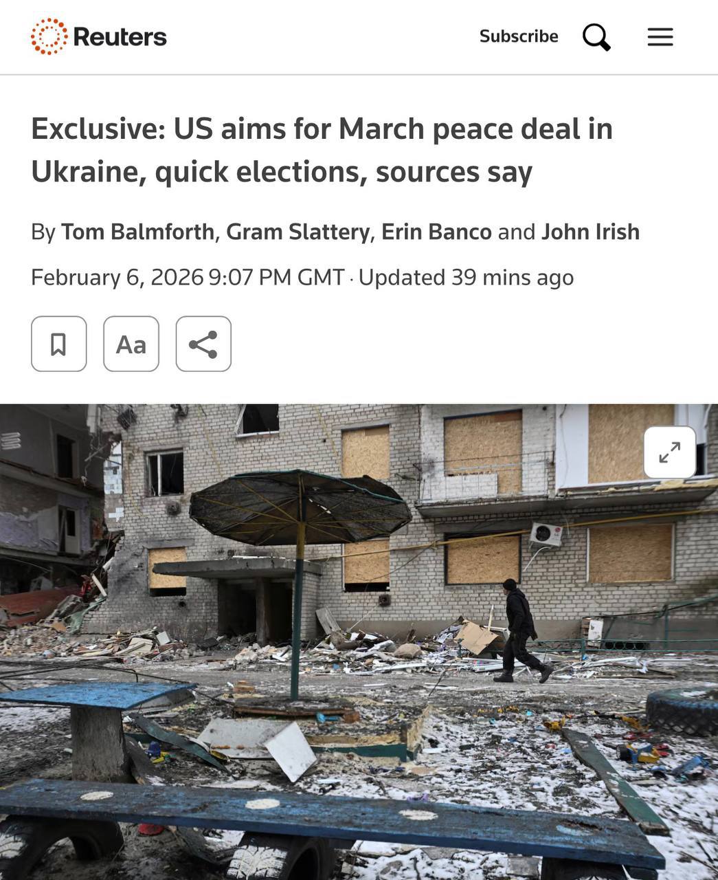 США и Украина обсуждали возможность достижения мирного соглашения между Россией и Украиной уже в марте 2026 года, — Reuters