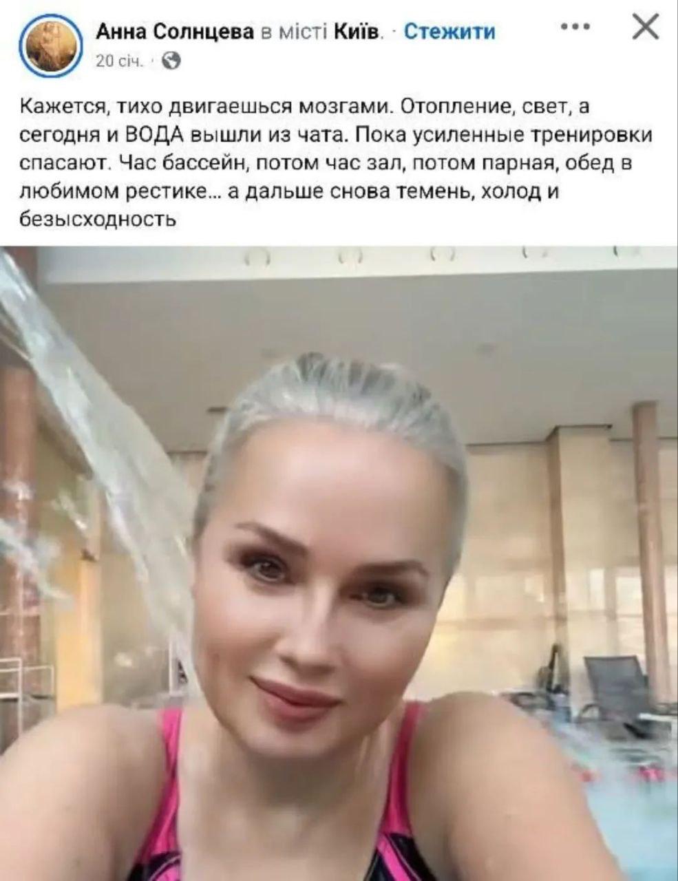 Мол, видите ли, пока есть свет удаётся и поплавать, и позаниматься, сходить в парную и в ресторан. А как только свет отключается, то сразу безысходность.