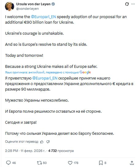 Глава Еврокомиссии призвала Европарламент к скорейшему принятию предложения по выдаче Украине 90 млрд и тот мгновенно откликнулся