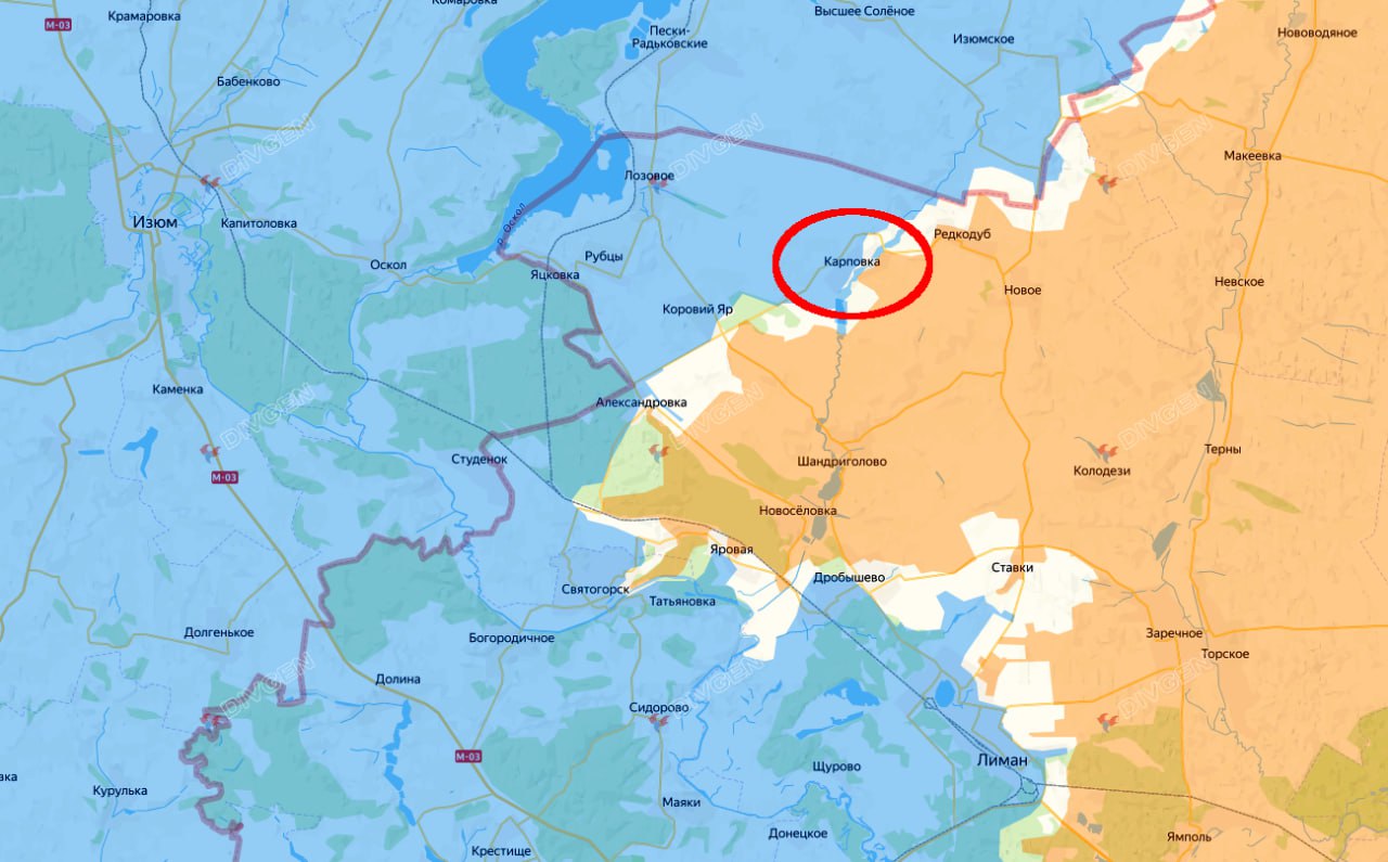 Карповка — село в Краматорском районе бывшей Донецкой области с довоенным населением около 390 человек. Расположено на обоих берегах реки Нитриус у границы с Боровским районом Харьковской области в 3 километрах к северу от села Среднее, об освобождении которого Минобороны сообщило 23 августа 2025-го. При движении с этого плацдарма на запад подразделения группировки выйдут на Волчий Яр, Коровий Яр, Лозовое, Рубцы и Крымки. Если этот рубеж удастся преодолеть, "Западу" откроется дорога на Красный Оскол и Изюм. Кроме того, контроль над Карповкой позволяет обезопасить тылы группировки, наступающей на Красный Лиман.