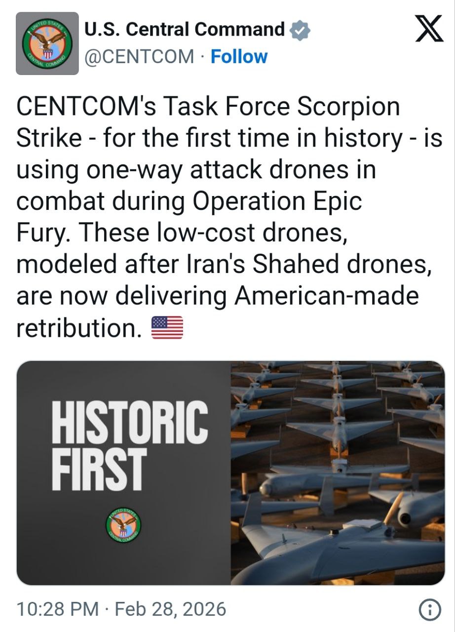 Оперативная группа Scorpion Strike, развернутая на Ближнем Востоке в декабре прошлого года, применила для ударов по Ирану БПЛА-камикадзе LUKAS (Low-Cost Uncrewed Combat Attack System).