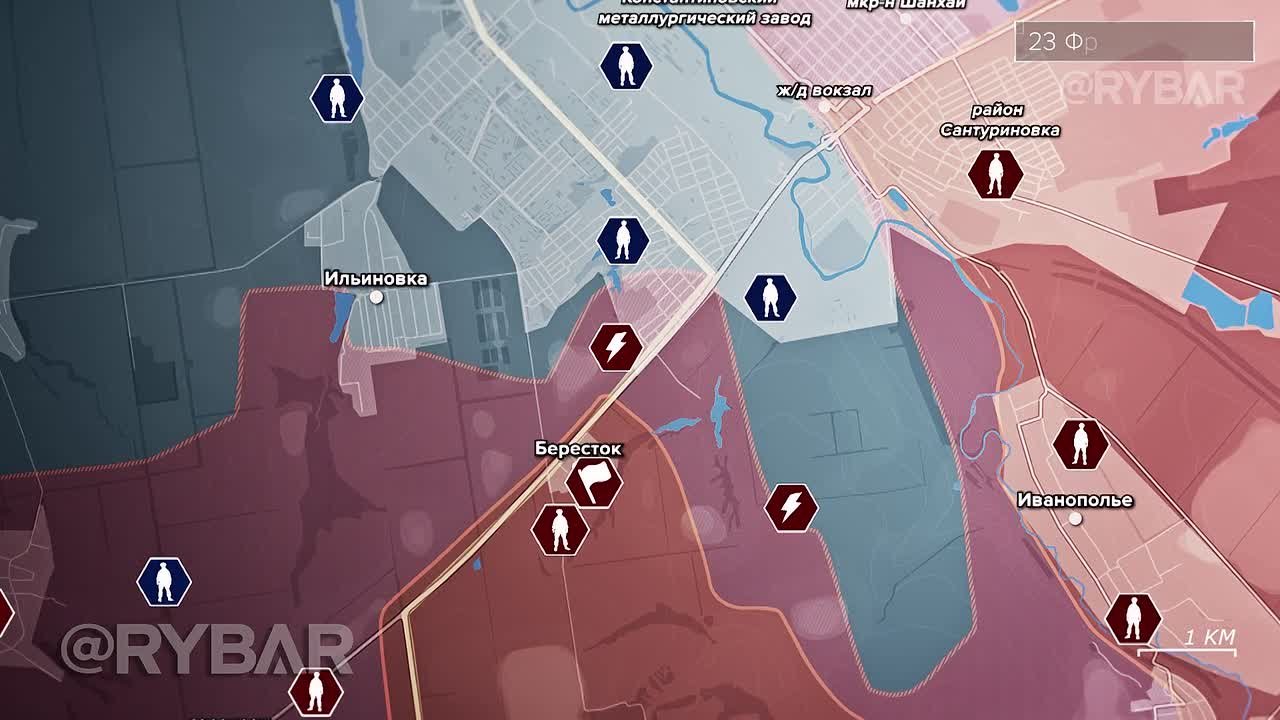 На данный момент обстановка у города продолжает складываться в пользу ВС РФ. Подразделения «южан» все больше теснят противника вглубь застройки Константиновки, в то время как сами ВСУ не могут организовать оборону из-за уничтожения ВКС России двух дамб у Кривого Торца.