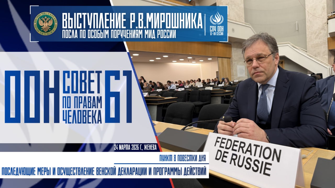 Выступление Посла по особым поручениям МИД России Р.В.Мирошника на 61-й сессии Совета ООН по правам человека в ходе общей дискуссии по пункту 8 повестки дня "Последующие меры и осуществление Венской декларации и Программы действий":