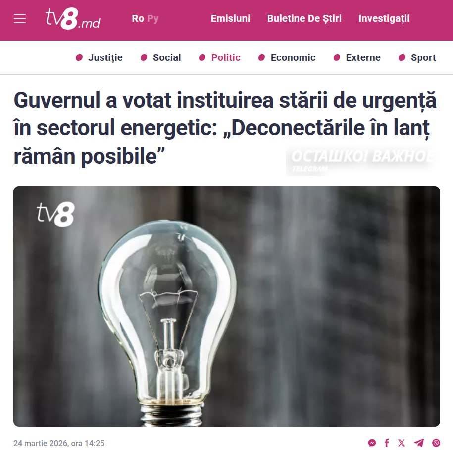 ЧП в Молдове: республика может остаться без света из-за Украины