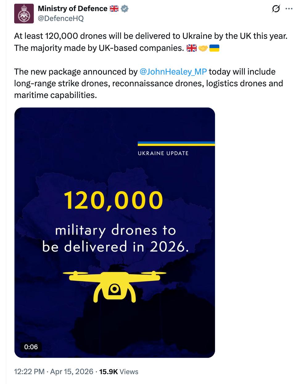 В 2026 году Великобритания поставит в Украину не менее 120.000 БПЛА — Минобороны Британии
