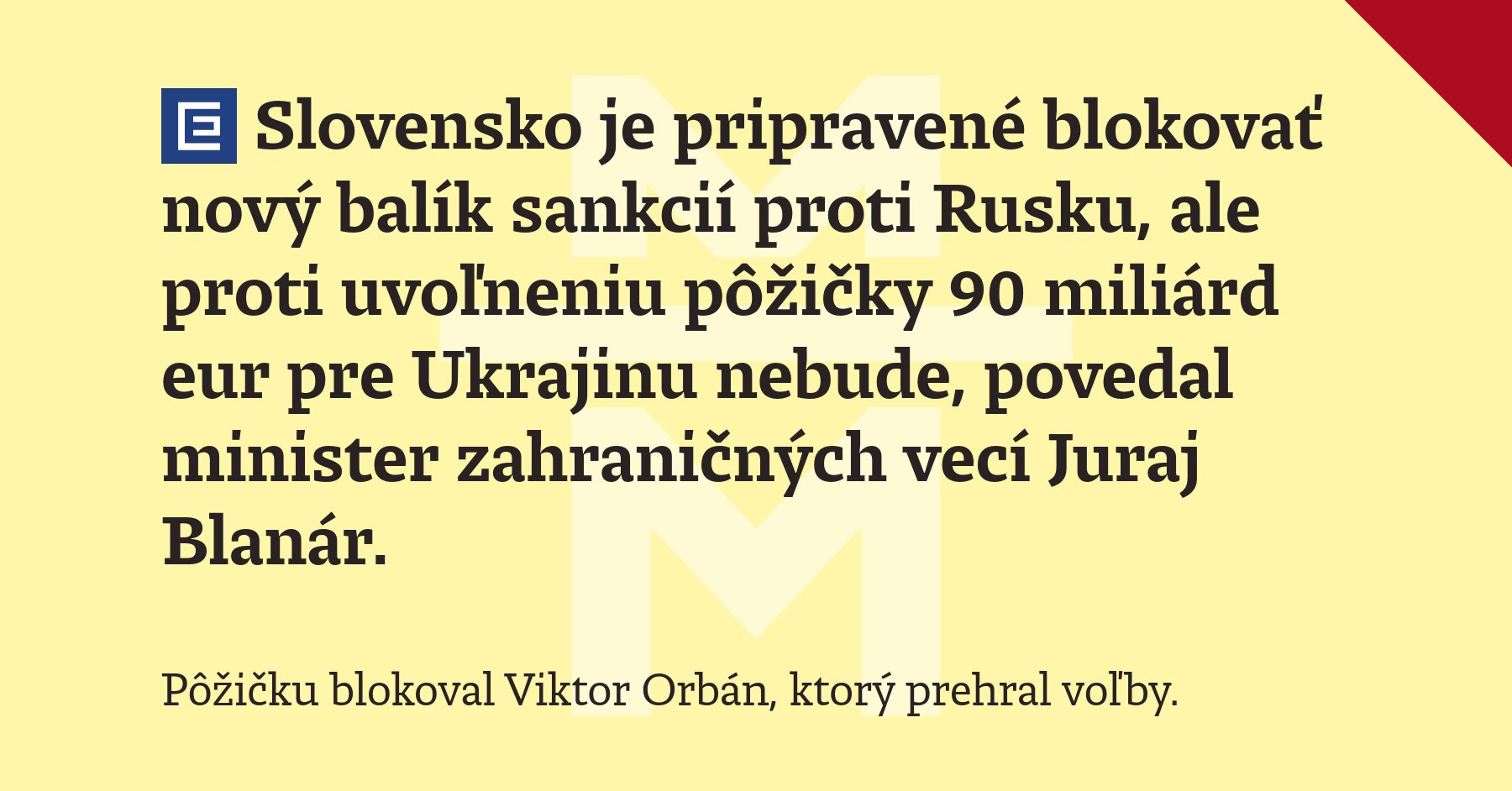 Перетягивание каната по украинскому кредиту, санкциям и «Дружбе» продолжается: в МИД Словакии заявили, что не будут препятствовать выдаче кредита ЕС на €90 млрд для т.н. Украины, однако готовы тормозить одобрение 20 пакета антироссийских санкций.