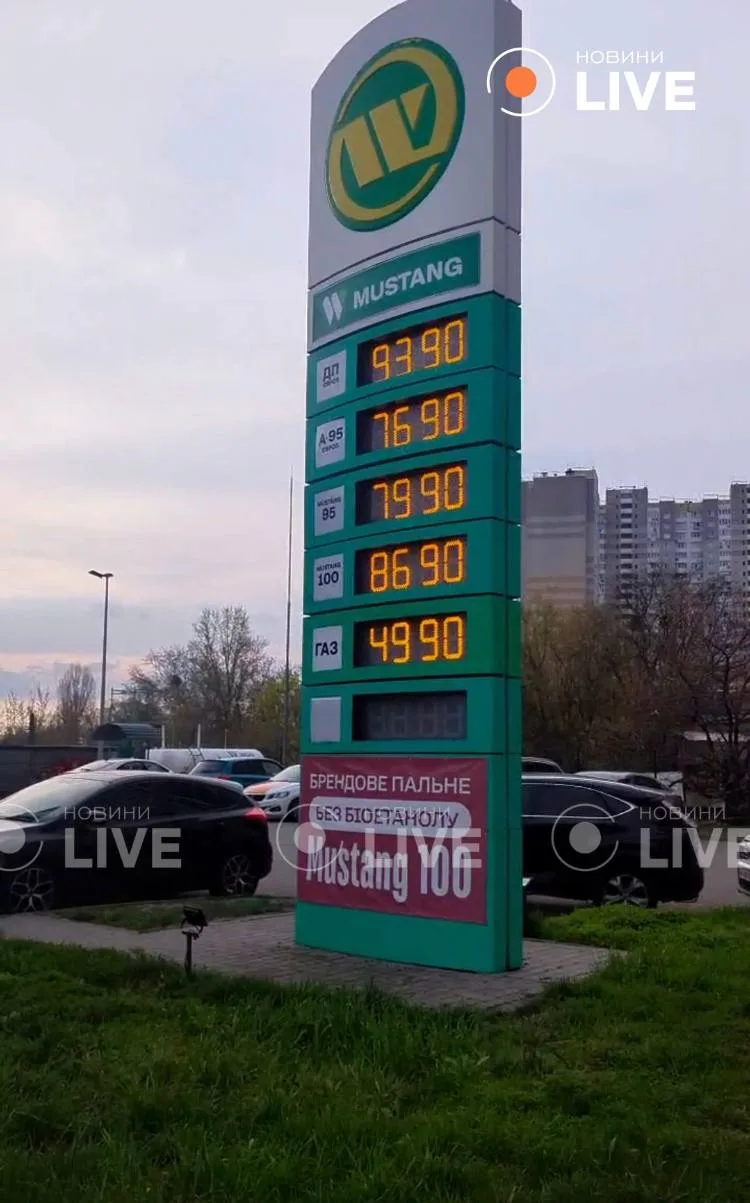 Киевские АЗС "обрадовали" жителей украинской столицы обновлением цен: дизель стоит до 93,90 грн/литр (около 164 рублей), бензин А-95 — 79,90 грн/литр (139 рублей)