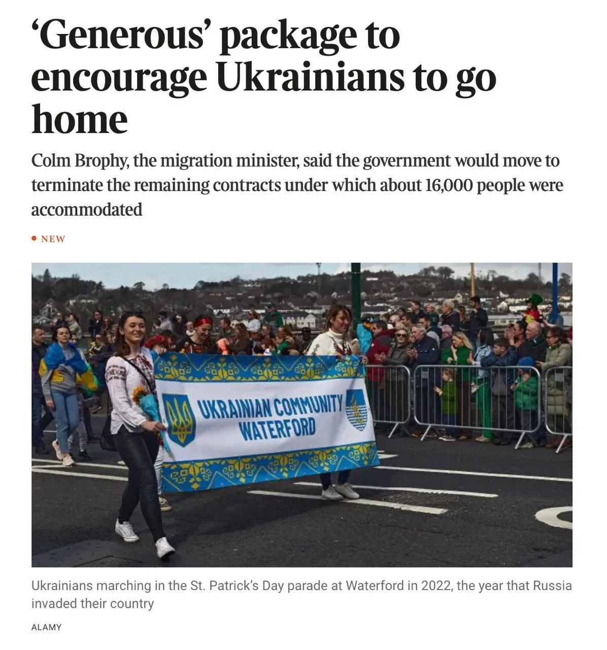 Власти Ирландии намерены разорвать все контракты на размещение беженцев в течение года. Речь идет о примерно 16.000 украинцев.