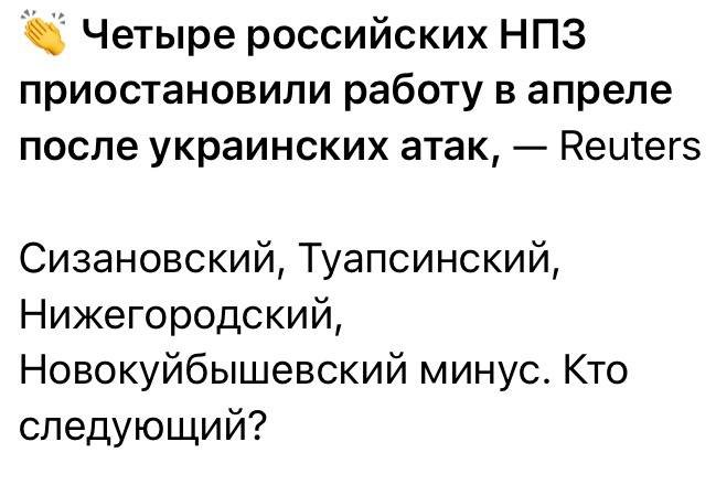 По его словам, убытки России от атак на нефтяную инфраструктуру уже исчисляются десятками миллиардов долларов. *