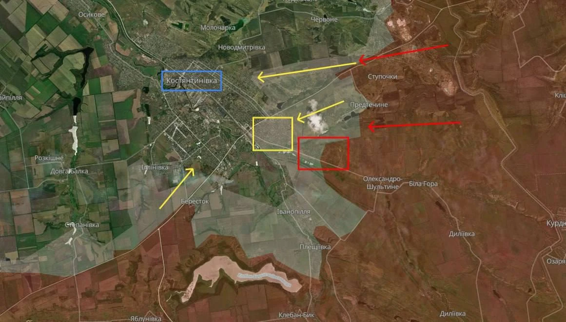 По словам противника, несмотря на активное применение дронов ВСУ, штурмовики ВС РФ закрепляются на окраинах Константиновки и используют плотную городскую застройку чтобы прятаться от украинских беспилотников, сосредотачивать силы и продвигаться вперед. Кроме того, ВКС России активно бомбят город, что усложняет его удержание.