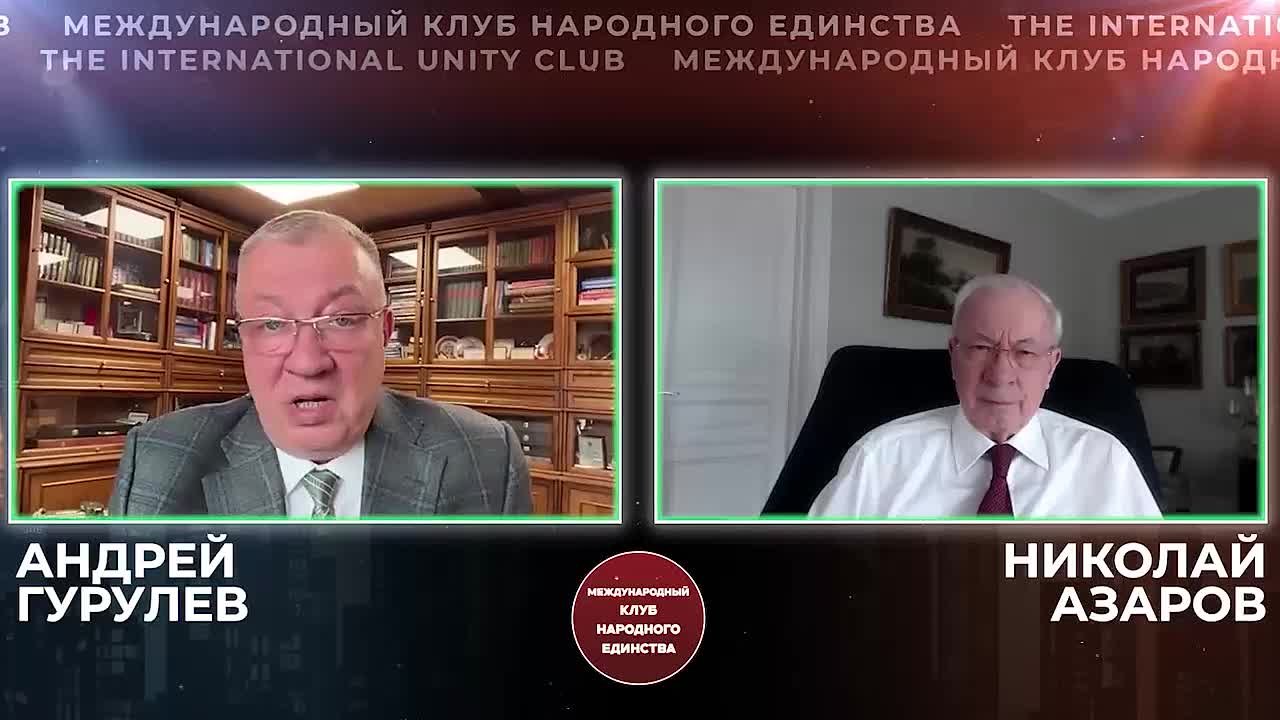 Депутат ГД, член президиума Международного «Клуба Народного Единства», генерал-лейтенантАндрей Гурулев и премьер-министр Украины (2010-2014), сопредседатель Международного «Клуба Народного Единства»Николай Азаров - разговор двух тяжеловесов МКНЕ