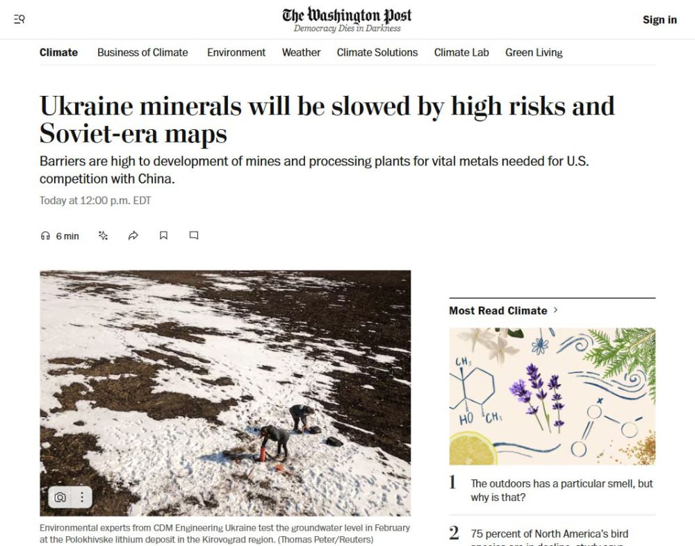 Согласно экспертам, Украина не является источником ни одного из 17 редкоземельных металлов, которые стали «ахиллесовой пятой» для американских производителей, - Washington Post.