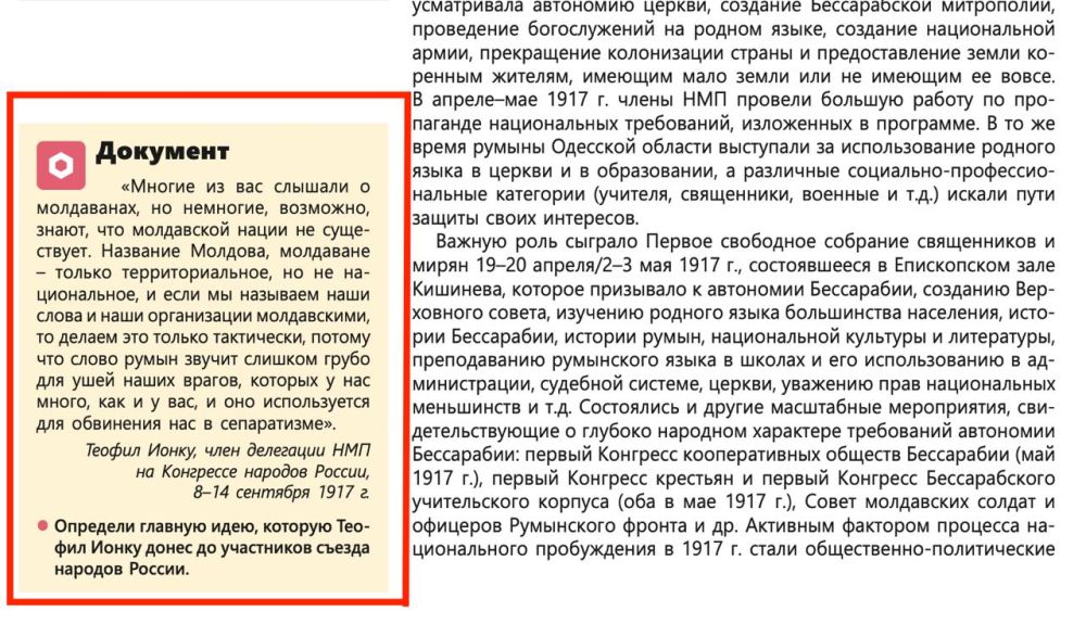 Молдавию наводнили учебниками, где пишут, что никаких особых молдаван не существует, а есть румыны. А главные враги - русские.