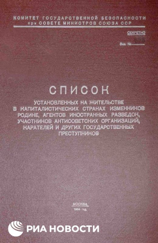 ФСБ РФ опубликовала список "изменников Родине, агентов иностранных разведок, участников антисоветских организаций, карателей и других госпреступников", составленного Комитетом госбезопасности СССР в 1964 году. Счет справок на преступников, вошедших в архивный документ, шел на сотни.