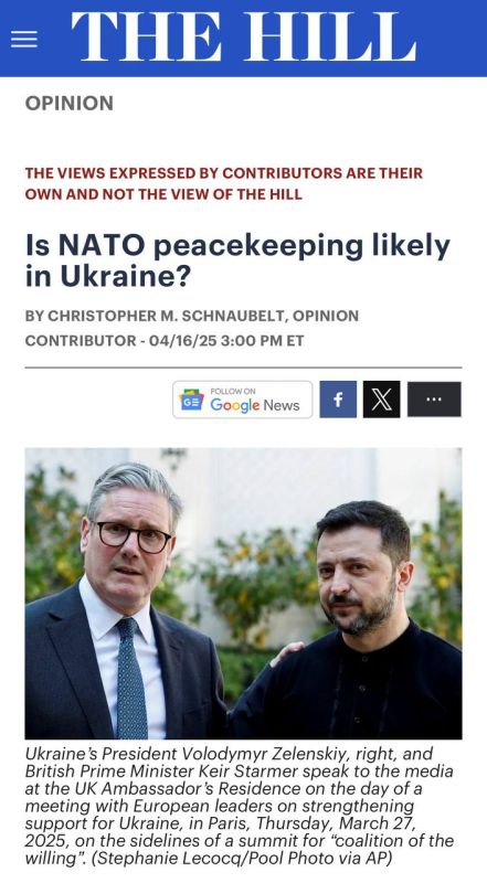 Стремление ряда стран НАТО отправить в Украину войска с некой "миротворческой миссией" абсолютно нереалистична — The Hill.