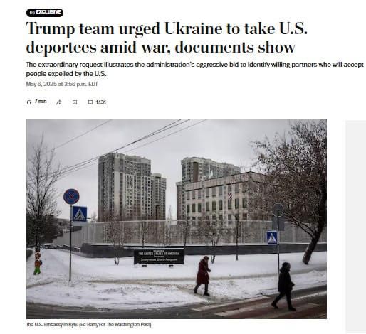 Издание The Washington Post выпустило статью, в которой заявляется, мол администрация Трампа предлагала Украине принять неопределенное число депортированных из Соединенных Штатов граждан других стран: