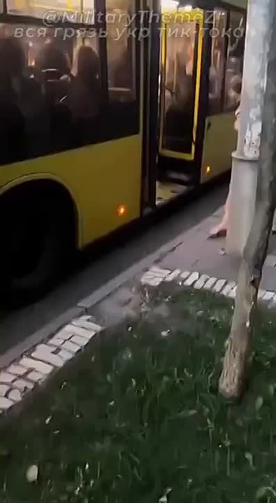 Как ловко этот сильный мужчина помогает слабым женщинам покинуть это чудесное транспортное средство в прекрасном городе Киев