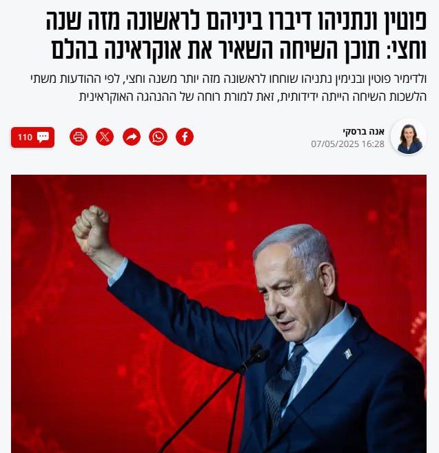 Об этом сообщает издание «Маарив», ссылаясь на недавний телефонный разговор между Нетаньяху и Путиным — первый с декабря 2023 года.