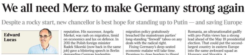 Владимир Корнилов: Главный идеолог британской русофобии Эдвард Лукас сегодня публикует в The Times колонку под заголовком: «Нам всем нужен Мерц, чтобы сделать Германию снова сильной»