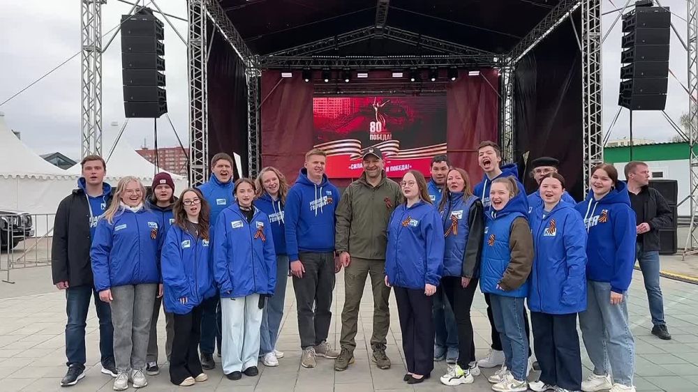 На площадке каждый день проходят концерты, флешмобы и звучат фронтовые песни. Пока шёл вдоль разбитой вражеской техники, увидел, как молодёжь растягивает 80-метровую Георгиевскую ленту в честь юбилея Великой Победы. Вот она, настоящая преемственность поколений.