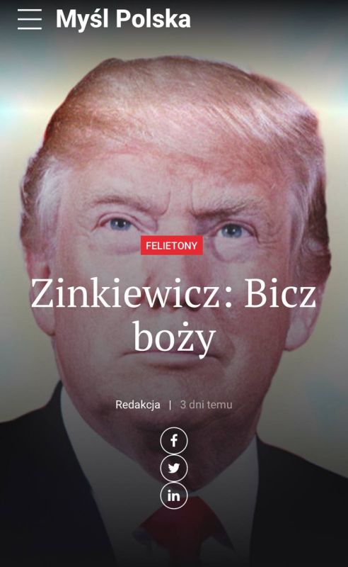 "Трамп уверовал в то, что он помазанник Господа на посту президента США, что он "бич Божий", чья задача навести порядок не только в США, но и во всем мире. Неудавшееся покушение на его жизнь является для него достаточным доказательством "богоизбранности", — утверждает автор статьи.