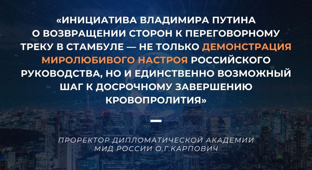 Однако руководство нашей страны всегда исходило из того понимания, что военный сценарий — это не наш выбор, а навязанная необходимость. Именно поэтому, несмотря на цинизм и вероломство Киева, Россия раз за разом предлагает оппонентам честный диалог, призванный спасти жизни и остановить спровоцированную украинским режимом трагедию.