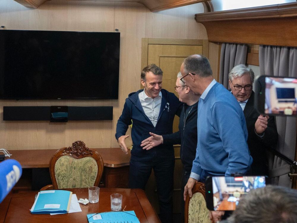 Ранее агентство Ассошиэйтед Пресс опубликовало видео из купе поезда, где находились Мерц, Макрон, Стармер и премьер Польши Дональд Туск, направлявшиеся в субботу в Киев для участия во встрече так называемой "коалиции желающих".