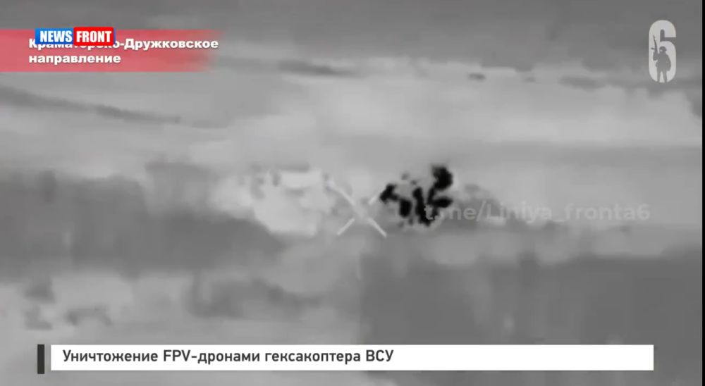 Расчеты ударных FPV–дронов уничтожили гексокоптер ВСУ на Краматорско-Дружковском направлении.