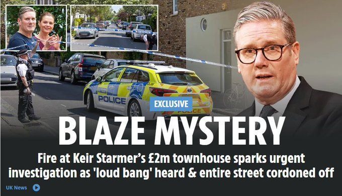 Пожар вспыхнул в таунхаусе Кира Стармера стоимостью 2 млн [212 млн руб]. Улица полностью оцеплена, пожарная команда подтвердила, что фасаду таунхауса нанесен ущерб.