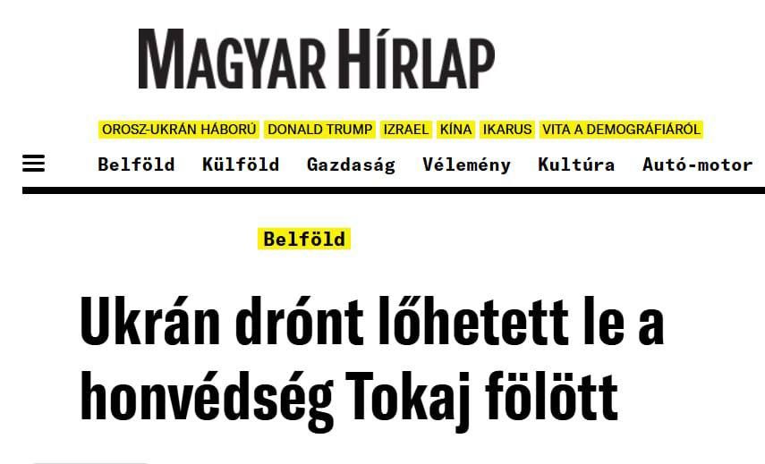 Украинские дроны сбивают и венгерские силы ПВО. Беспилотник уничтожен на границе между двумя странами.