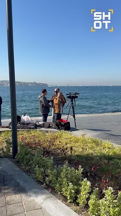 Журналисты из России, Украины, Европы и США ждут начала переговоров на берегу Босфора у дворца Долмабахче в Стамбуле.