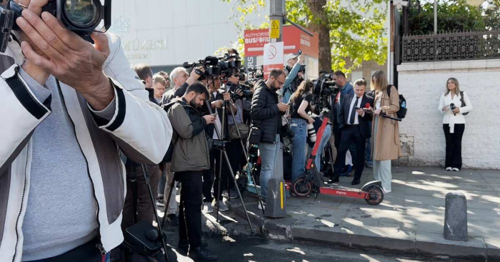 Десятки журналистов со всего мира собрались возле рабочего офиса президента Турции, дворца Долмабахче в Стамбуле, в ожидании переговоров России и Украины, передает с места обозреватель РЕН ТВ Виктор Синеок. Полицейские пытаются удержать представителей СМИ на небольшом участке тротуара перед зданием дворца.
