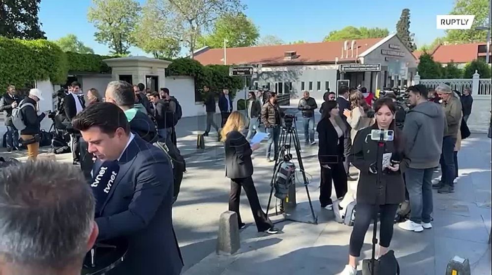 Десятки журналистов собрались у дворца Долмабахче в Стамбуле, где, как ожидается, вскоре состоятся переговоры между делегациями России и Украины. Репортеров, ожидающих начала встречи, постепенно пускают на территорию президентского офиса.